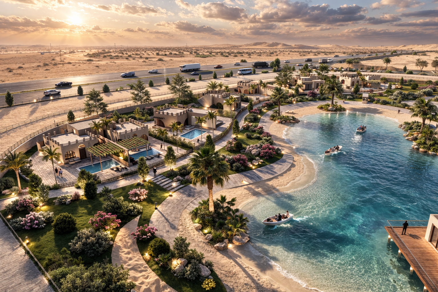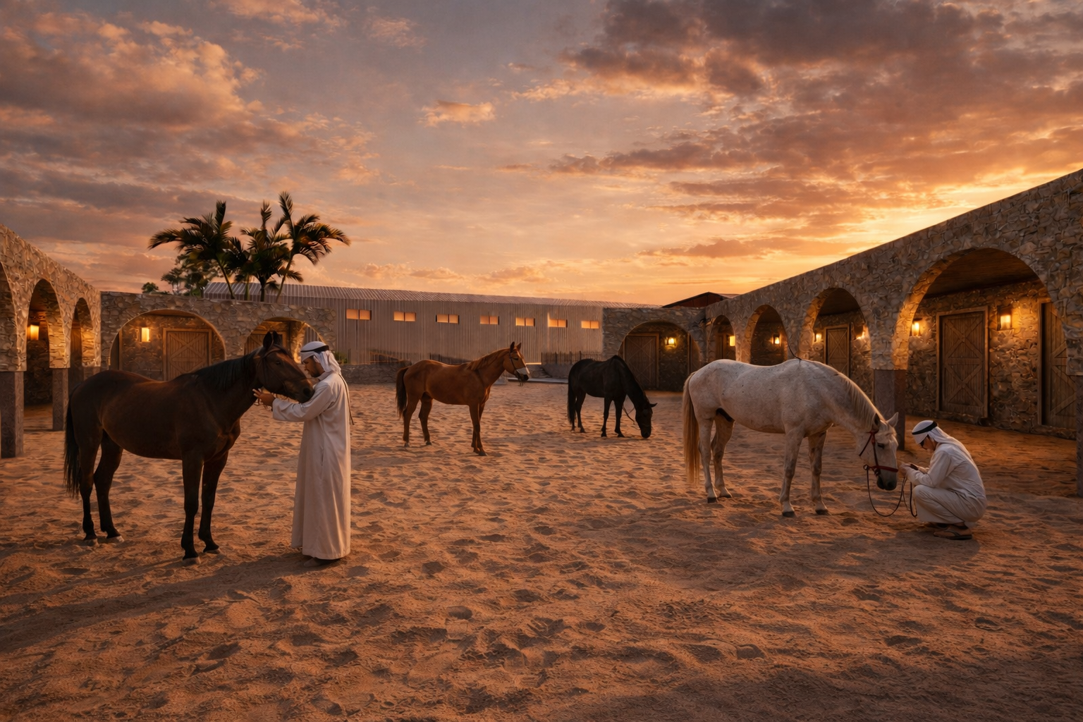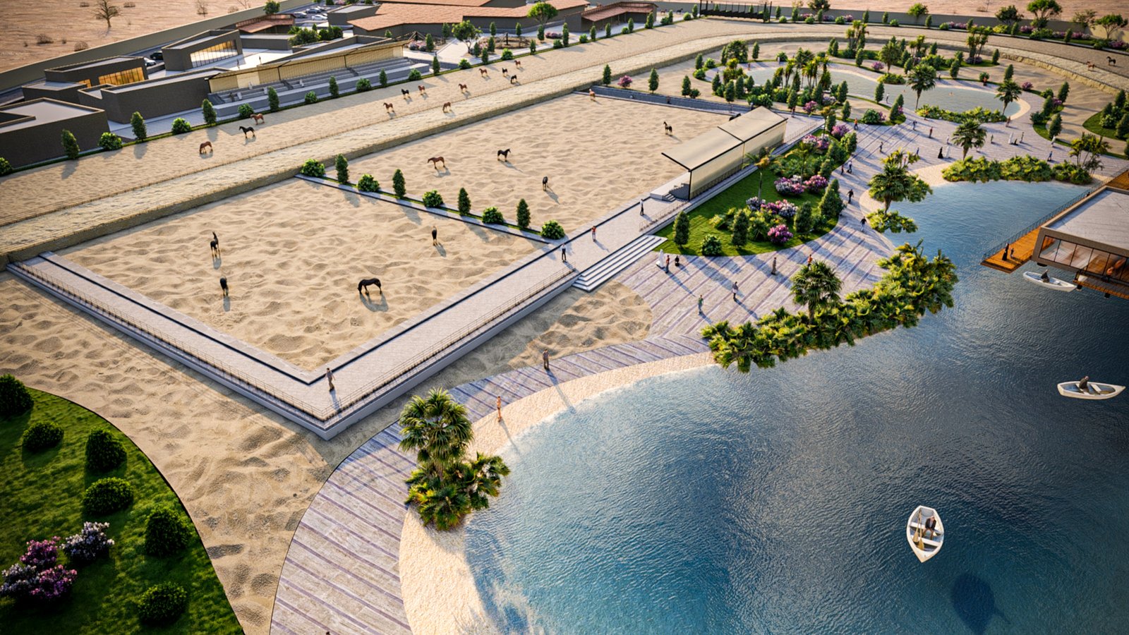 This project is a great place for fun and relaxation that brings together horse heritage and modern life. It features professional horse stables with racing and training tracks, plus special indoor and outdoor areas to watch the horses.